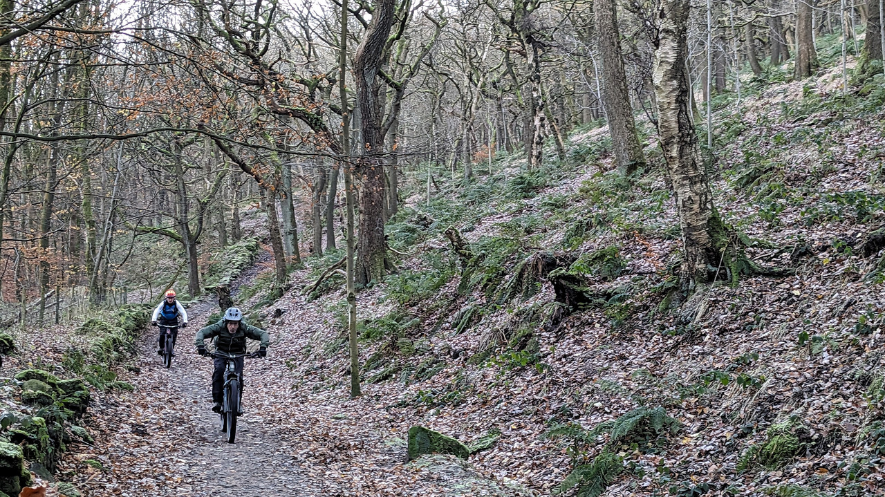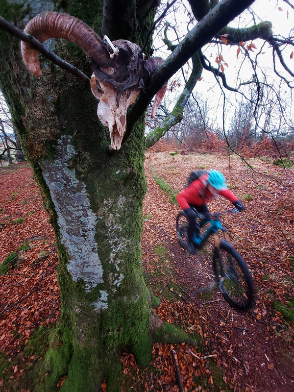 Afternoon pedal with the 'yoof' - my son and his two friends at QE park yesterday. Boring shot of trail and low sun.