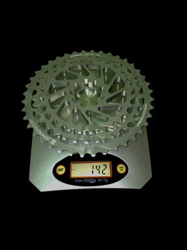 On the weight of the General Lee sprockets, I'm converting an XT 11-36 10-speed cassette, so I'll be replacing the 3 large sprockets, the ones on the aluminium spider. I weighed them at 186g for those three. I weighed the General Lee replacements at 164g, so that'll actually be a little lighter.