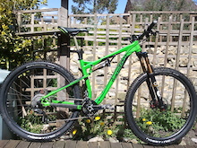 Meta AM 29er, Pike up front, nice big tyres (2.4 ardent grazing the paint at the back, but worth it). Bit of a learning curve to come back to as you really, really have to get the weight over the front wheel. I often forget and you can watch me sail off into the bushes on the first tight turn of a ride. It's worryingly capable if you point it downhill and hold on (far more than me!) and I was surprised how not-slow it was in tighter stuff.