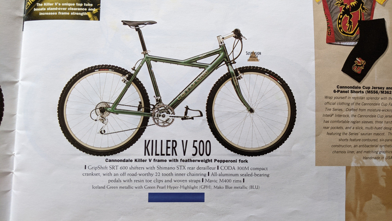 What you have there is a 1996 killer v with the wishbone rear end and 1 1/8th headtube. These came with P Bone straight forks not the legendary Pepperoni.