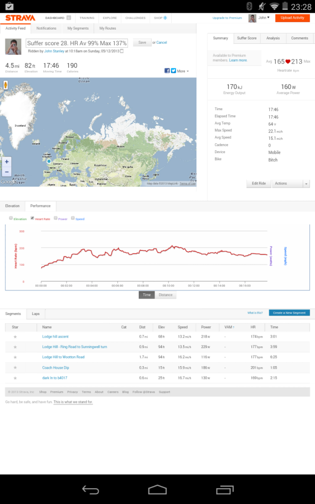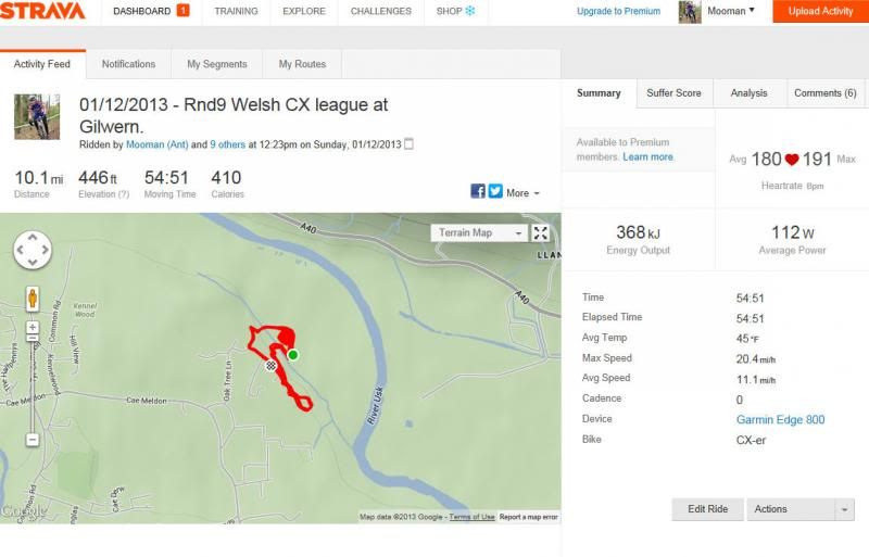 Also it could be a spike because at the point it was recorded was about 30 seconds in to the race, ok shouldering the bike up a steep hill, but I wasn't half as knackered at that point as I was 10 mins