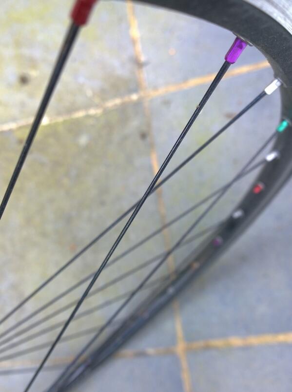 Built up a bike for eldest daughter, she laced the wheels and did them with a repeating pattern of coloured nipples. Oh, and alternating black and silver spokes 🙂