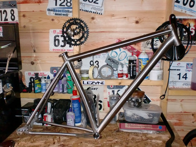[img] [/img]after you guys all laughed at my pogies thread earlier i went back to my p(l)otting shed .... and came out with this .....its a bit short in the seat tube but it will be good to ride for a good test of the rohloff and for my new swallow ti. Initial thoughts are im going to like the rohloff having pedaling it about the drive(before you scoff i have a 2 mile driveway) -ive ridden new ones before and they are like pedaling in trecle - this ones a mates old one and done loadsa miles feels looose ! ....
