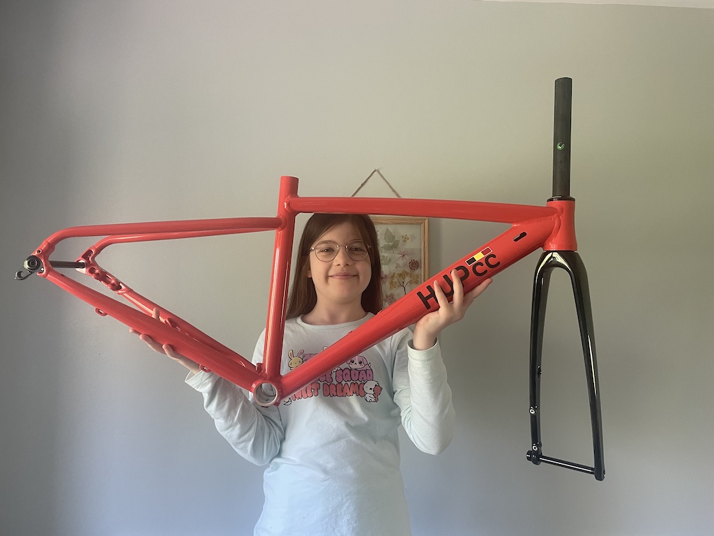 Sophie has out grown her 24 inch wheel'd road bike so the bike fairies dropped off this Hup Straatrace 37cm frame this morning. Colour is more orange than red which is a bit disappointing but hey ho.