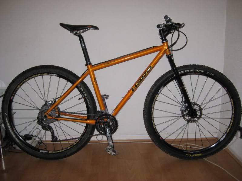 Got the frame and tyres from the classifieds, wheels from CRC when they were cheap over Christmas and the rest came from my 26" HT. Comes in at 25lb on our luggage scales.