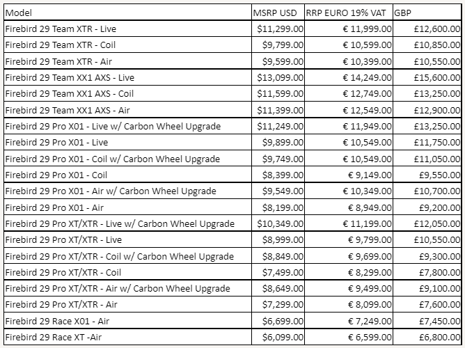 I also know there is a lot of technology and R&D that goes into a bike but compare the Pivot price list