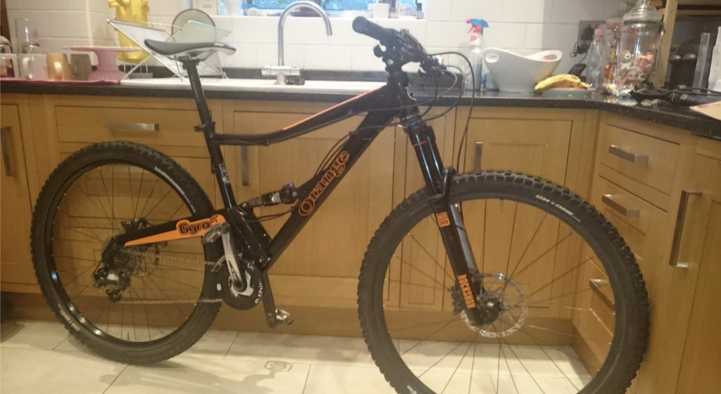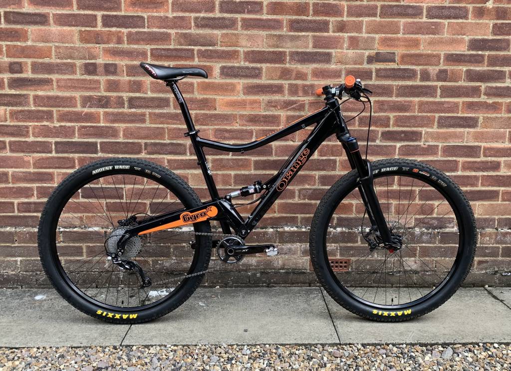 So this is a ~2014 Orange Gyro with a Suffolk mountain destroying 110mm of travel paired with a frankly unnecessary 120mm of Pike loveliness.