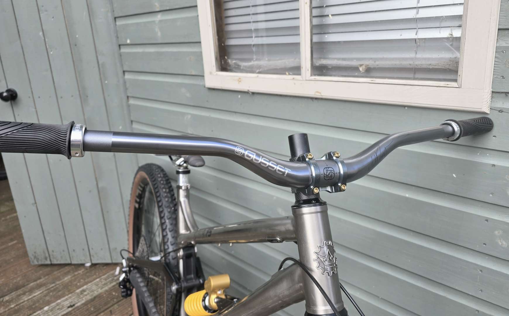 Gusset Matt Jones signature bars 38mm rise and Oak 42mm stem.