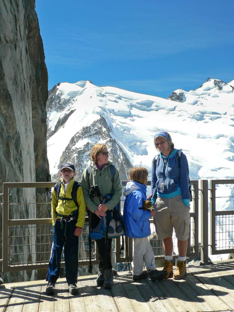 We had a great family holiday in Chamonix. There are huge snow covered peaks over the town. Our best day was cable car up the Aiguille de Midi. Then half way back down. Walked along the Grand Balcony Nord. You can then go inside the glacier and then down by train