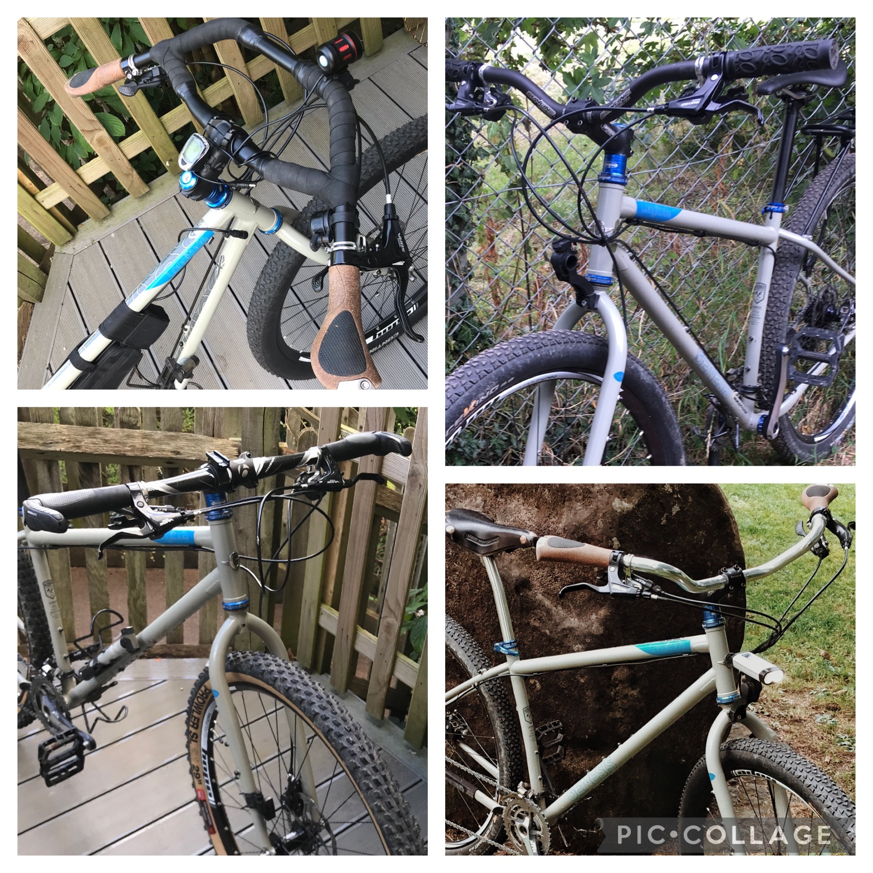 Bikepacking/gravel/road 29x3 Knards, rigid fork, OG bars (quite narrow and sooo comfy). Efficient.