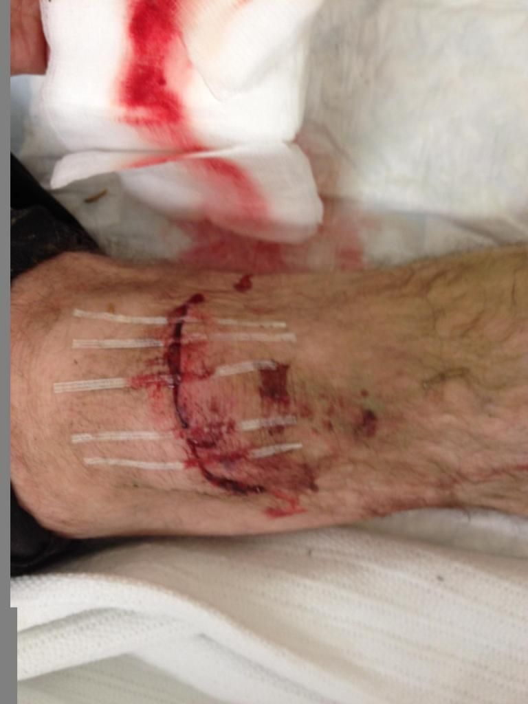 My mate has some nice pictures of the stitches and when they were cleaning the wound before stitching. I'll post them when he sends them.