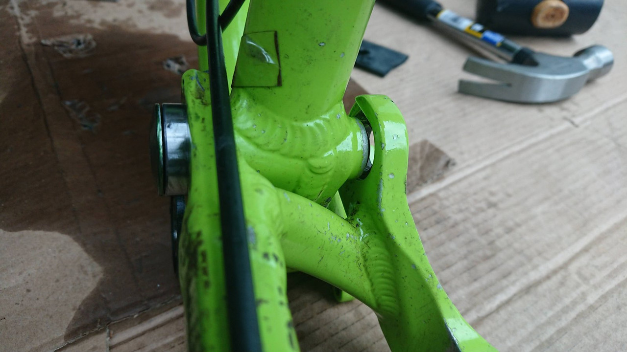 I'm struggling to remove the main pivot pin from my Salsa Horsethief. It's 6 years old and I've never changed the bearings (which might be related to why it's a bugger to remove).