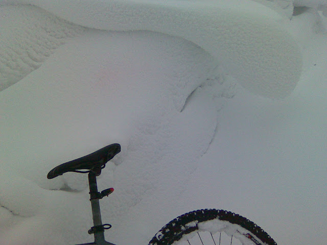 some of the singletrack was unrideable as were most level and uphill sections due to the deep snow (up to 2' drifts in places). Downhill parts of Italian Job and high-as-a-kite were fun though :o).