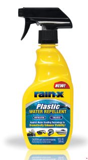 "For plastic surface applications, try our new Rain‑X® Plastic Water Repellent!"