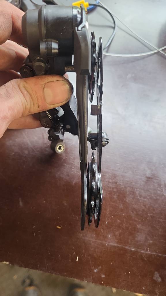 Bike in as jockey wheel (top) split after a ride, also cage scraped as opposed to banged.