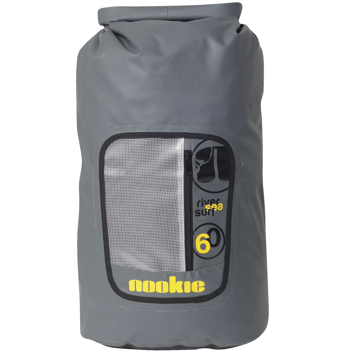 Look in the watersports world. I have the older version of this Nookie 60Lltr kitbag/drybag. It's brilliant. Roll top, keeps water in as well as out. Back straps.