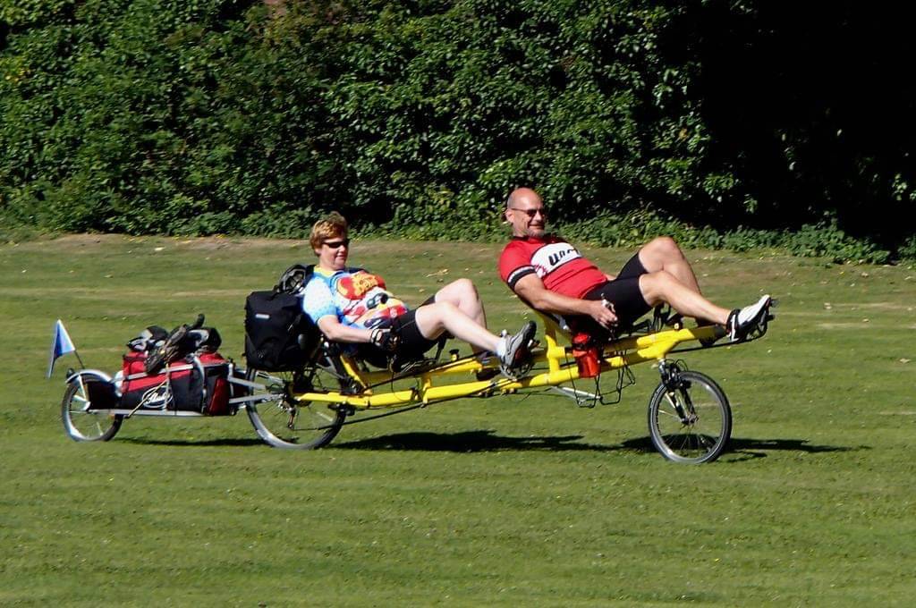 There are a few recumbent tandem options. Haze Pino is the most well known with a recumbent stoker out front and a conventional captain sat at the rear. This design has been also used by Bikenky cycle works and more recently the Circe Morpheus. Very popular with a less able stoker. Some of the gearing options means the stoker doesn’t need to pedal all the time. The Circe converts to a cargo bike too.
