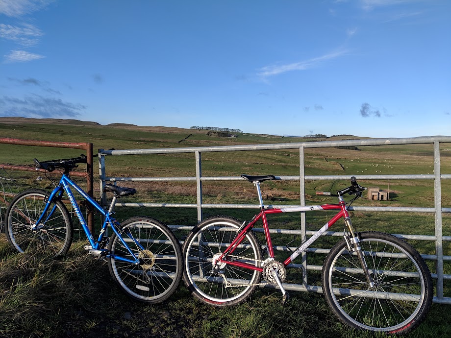 The Bontrager I've just finished a bare frame restoration of and its a lovely riding thing. The rockhopper is my partners and has just been turned into touring spec (rigid fork, new XT triple transmission, nimbus tyres) for an upcoming trip to the outer hebrides