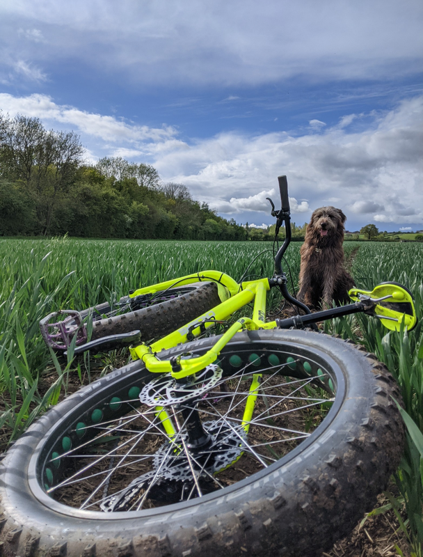 I've got a Labrador and to be honest, I don't think there's much between his ears 😀 he's a lovely dog, plays with the kids and will walk for miles where he regularly runs off in one direction and then comes back, but he get's overly excited by bikes a just tries to launch himself at them so riding is a no go, he even does it in the garden with the kids riding round! Saying that when I've got the jet wash out giving the CX bikes a proper clean he runs at that, tries to drink the jet and is a general pain in the arse.