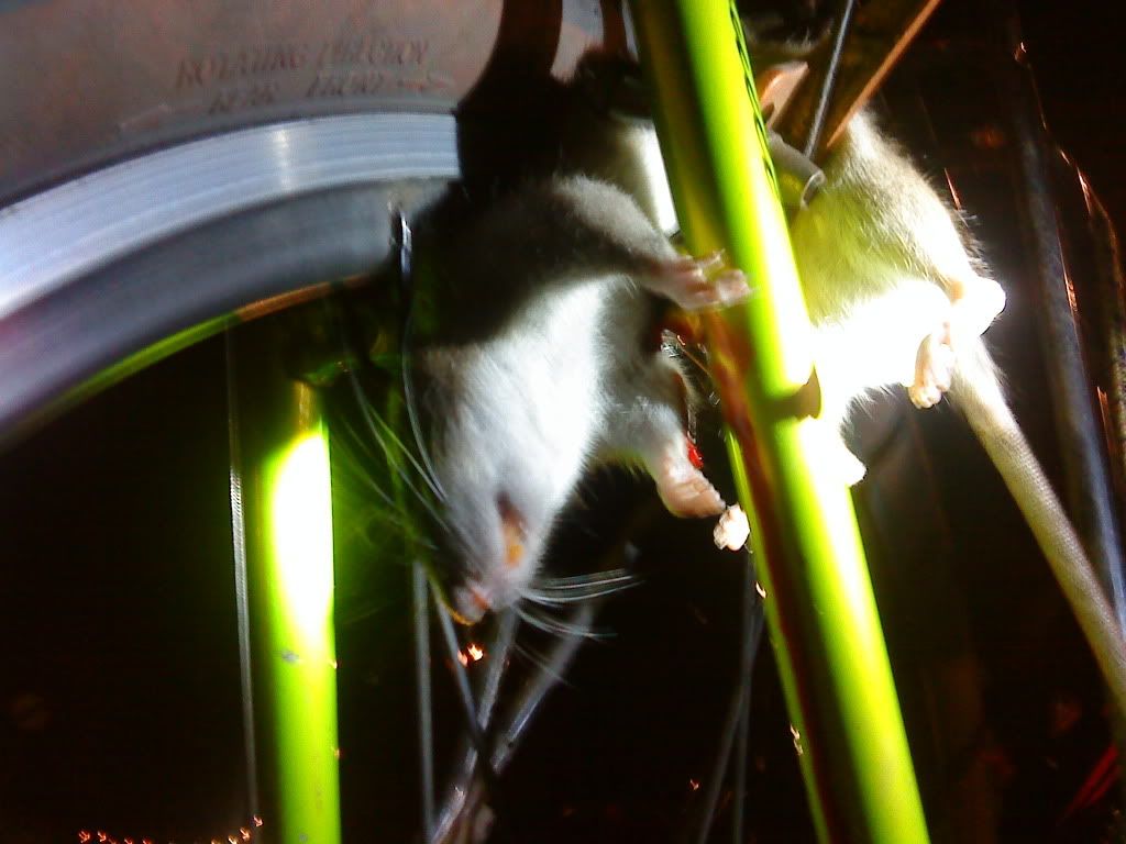 Rode over and squashed a rat years ago. it sort of exploded in the same way that a crisp packet does if you stamp on it just right. Rat's weren't in short supply so I didn't feel bad.