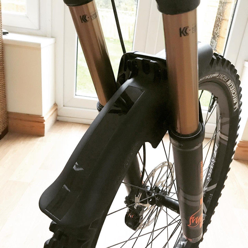 you would have thought that nearly everyone runs at least a small guard, even just for stones and minor bits in the summer, and not just in the UK, nearly everyone on the EWS, that the fork makers would bring out a better integrated design by now, there's DVO with the small bolt on option, but it seems like an easy win for RS or Fox to come out with a proper propriety solution