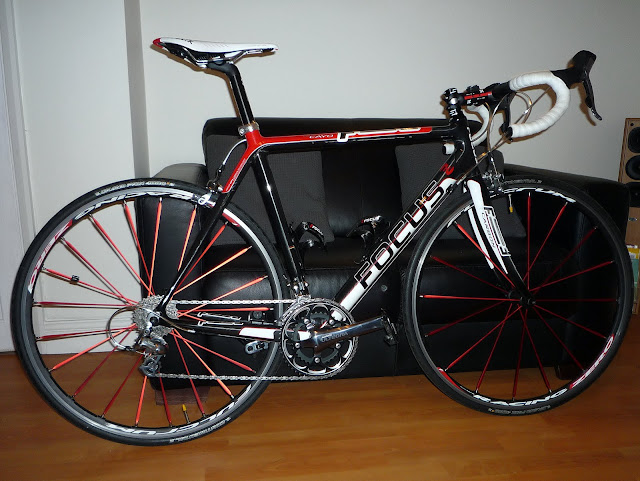 Mine has RS-10 wheels which are heavy, but GREAT for training. Frame is super stiff in the bends downhill and it feels very secure, yet very very sprightly up the hills, and I don't get as hammered as I think I will on the rough roads of Sheffield and the Peaks...!