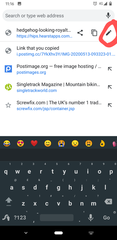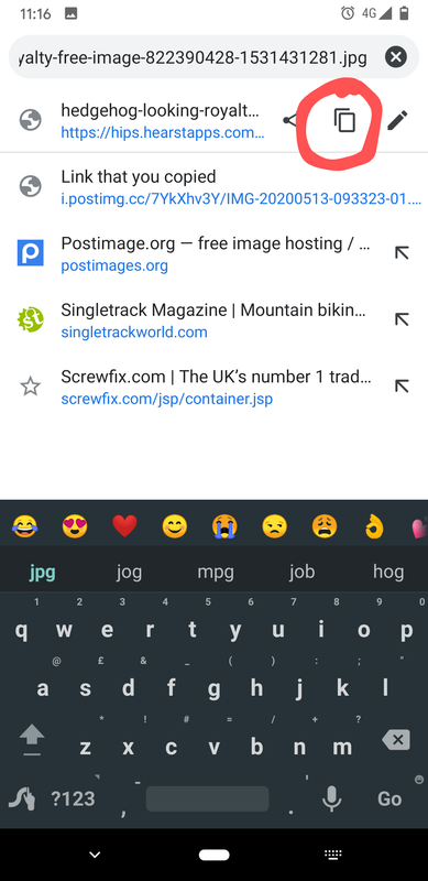 When you've copied that image address, all you gotta do is just like before, back at the singletrack forum reply box, paste it in on mobile, on desktop paste it into the box after tapping the image icon.