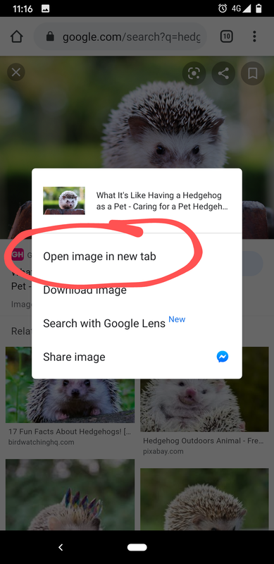 So when you do that, the whole image address is shown. If it ends in jpg, you're good to go. If not, find yourself another hedgehog. Let's assume it does this time.