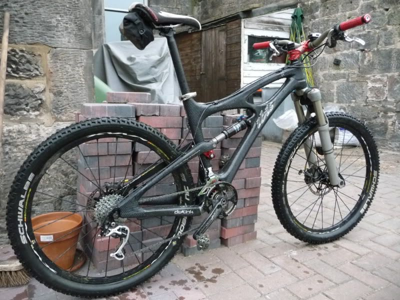 Its very very supple and thats on used forks, not new ones. Being able to wind them down helps a lot. Changing the fork length has a significant effect on the handling between going up or descending. I think the old style links gave some rear flex but the Lopes Links are solid. Climbs really well, responds to being hammered down things as well as happy in slo-mo techy picky descents. Running fat Nobby Nics from my old bike but I think a narrower tyre may be better to clear the rear triangle. Having said that I spent a long time taping the frame to protect it.
