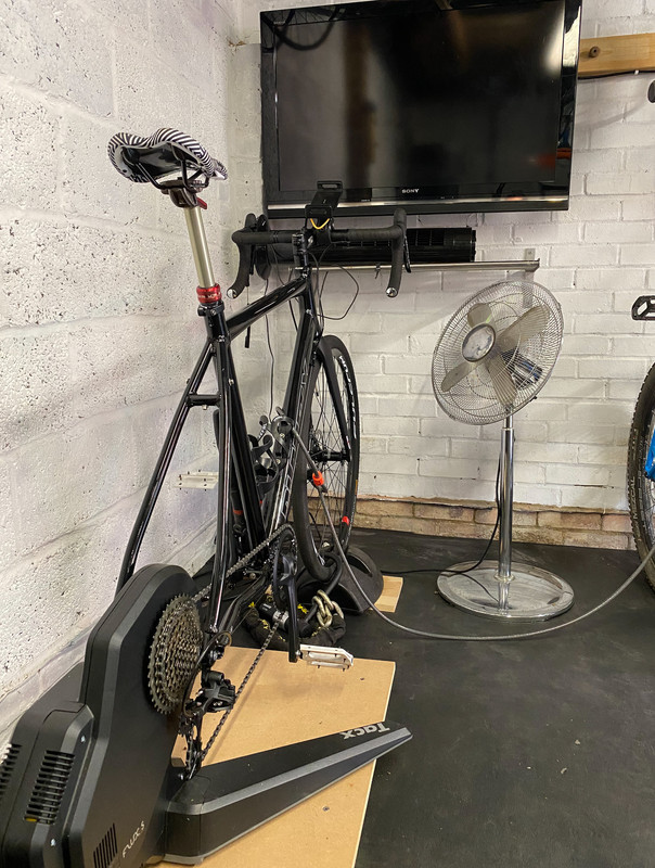 This is a timely thread as I spent a bit of time on Sat adding a socket in the garage & moving things around so I can get a 'proper' Zwift set-up rather than constantly dragging the trainer & bike into place.