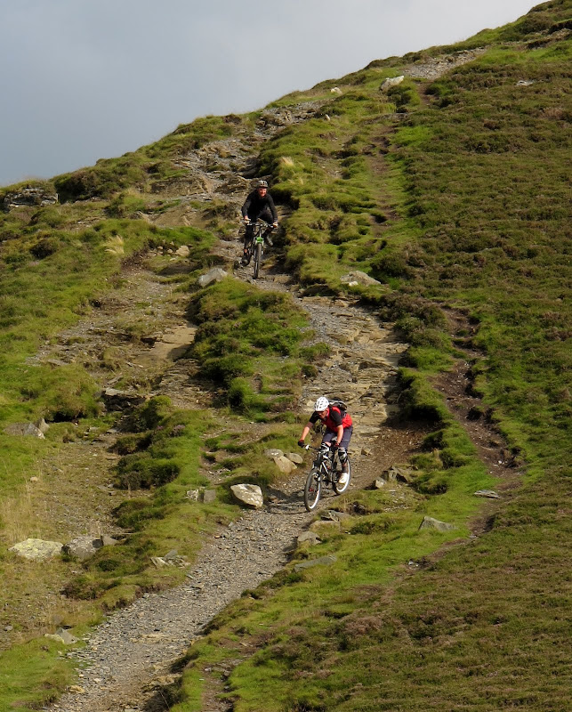 From memory Grum, there is one section thats a more sandy coloured rock that drops about six or seven metres pretty much vertically. It looked like a pretty recent slide to my untrained eye. Really really good ride though well worth the climb up Skidaw