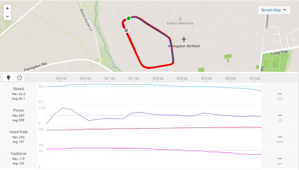 I was racing the 4s at Abingdon today too. I was caught in a poor position coming into the last lap and had to bury myself to hang on. Overtook quite a few coming up to the finish line though probably top 20. I was going to try some attacks today but didn't feel great in the wind!