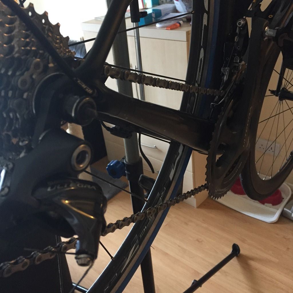 While everything was off I removed the bar tape from the chainstay and fitted a couple of layers of helicopter tape.