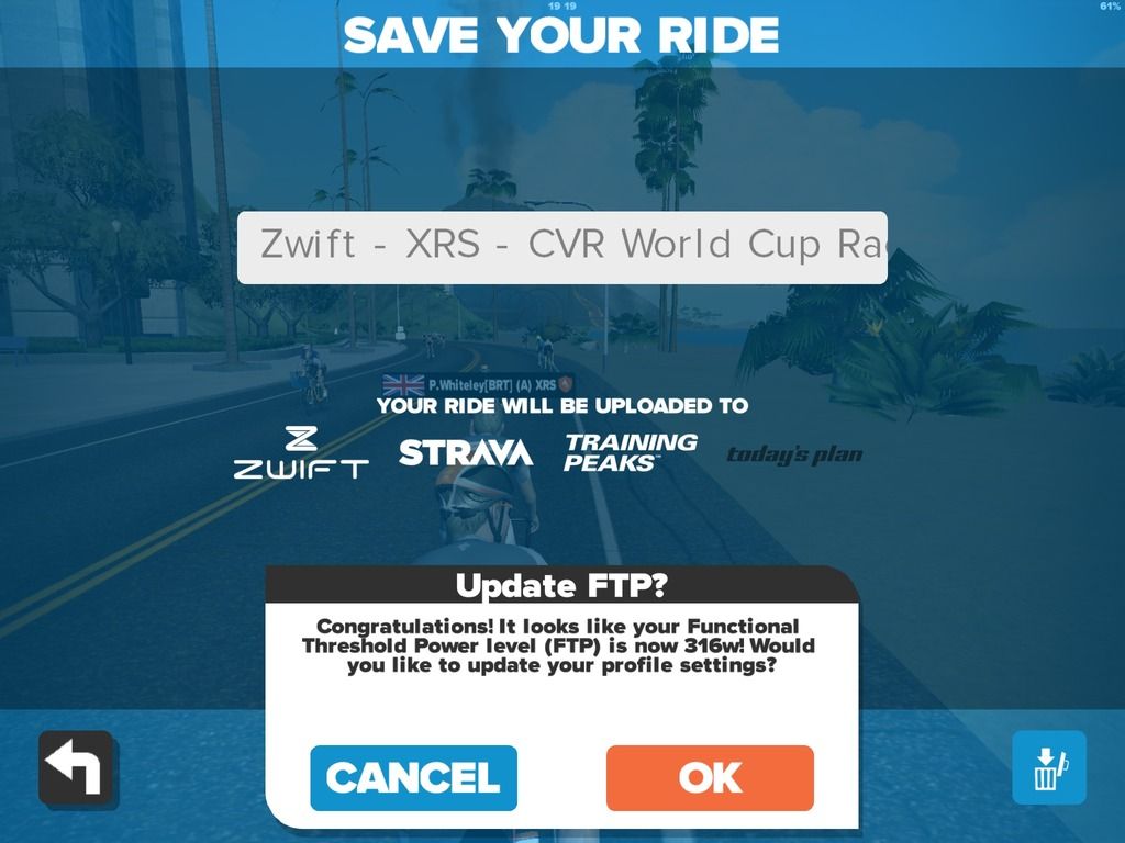 Previous FTP was 315, but during the CVR World Cup this happened: