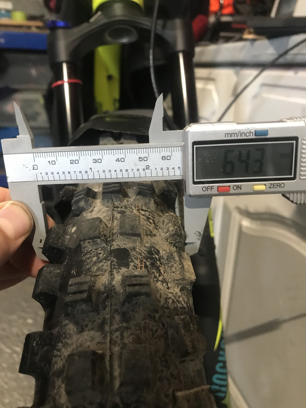 2.6 Mary is a brilliant tyre. If you run one with an insert like rimpact it makes it even better in my experience. I took a photo of my 2.6 Mary fitted to WTB 30mm rims on my winter bike with callipers so you can see real life measurements. Can’t say I really notice any horrific squirm even on hardpack bermtastic places like BPW. But I tend to run higher pressures than usual at bike parks