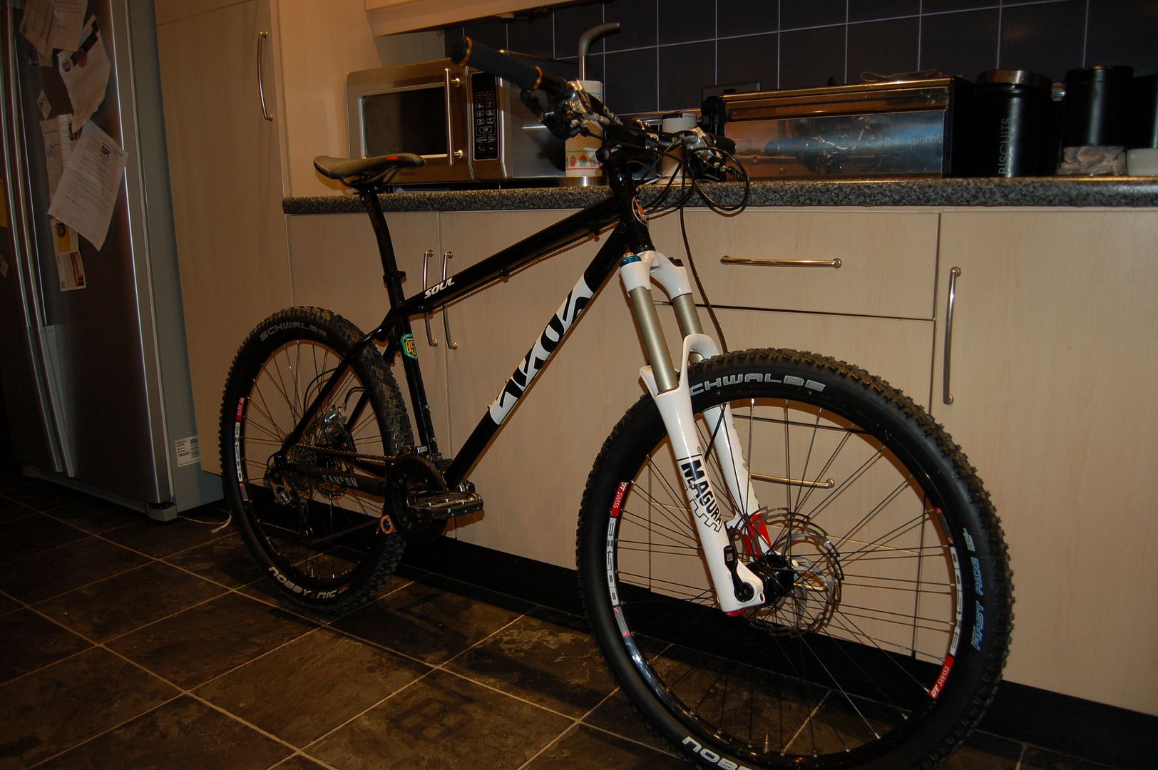 The Soul frame here was £200 and all the other kit except the saddle, seatpost, grips and headset came off the Ragley. He's sold the frame and some other bits are on ebay . He owes me £100, less what the used bits on eBay fetch, which he'll pay off through gardening and car cleaning duties.