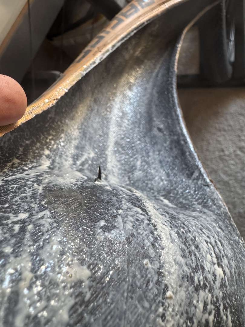 I was taking tyres off today and wiping up the Stans residue. Front tyre had a small thorn and rear had something resembling a hypodermic needle. Was right through a tyre knob and protruding a good 8mm. God knows how long they’ve been in there, but both would have been a puncture repair on the trail. Neither had resulted in a noticeable pressure loss when out riding.