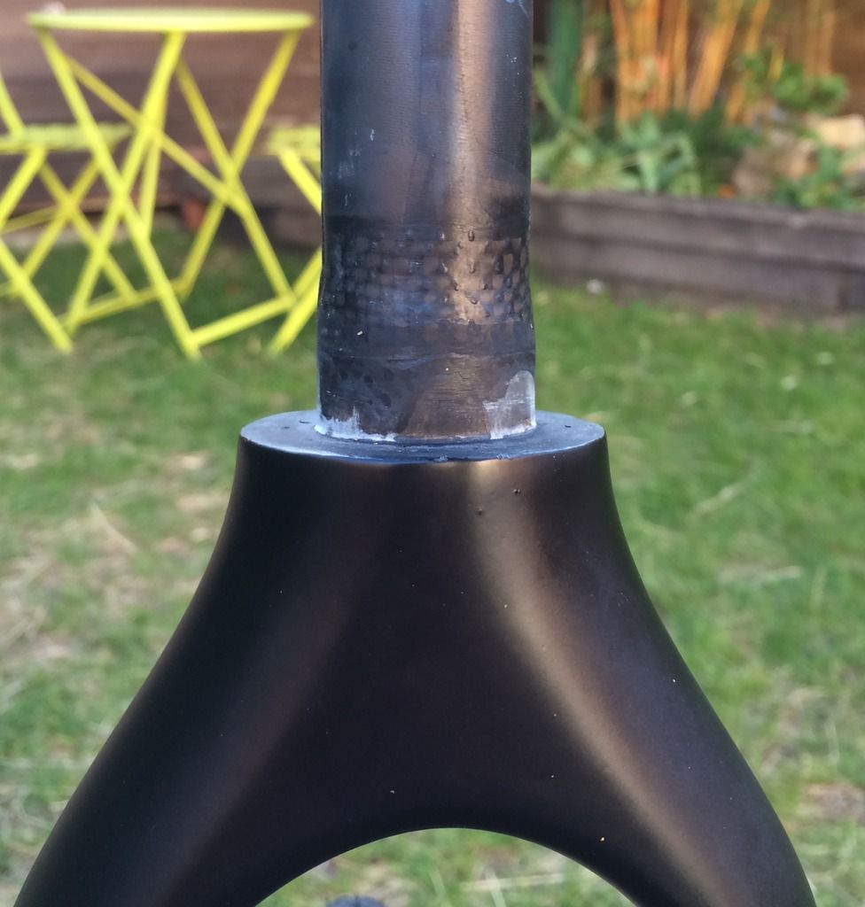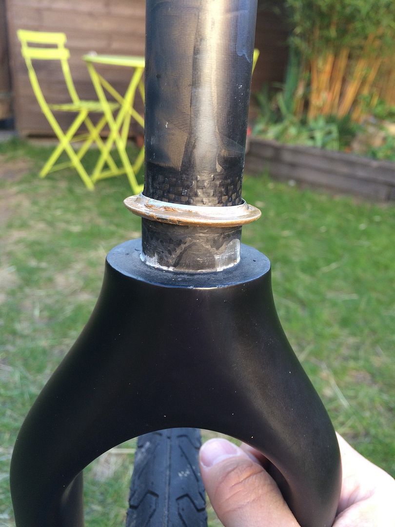 I've got some new carbon forks as a replacement after the steel ones were damaged. I've taken the crown race off the old forks, but the carbon steerer on the new one is wider at the base, so it's way off fitting.