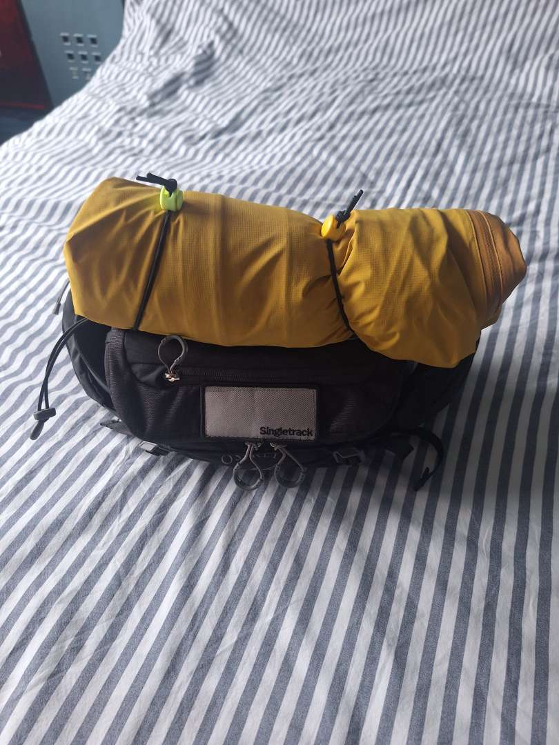 I am doing Enduro2 later in the month and they suggest we bring a jacket with us. I will be using my small Evoc bum bag, but dont think i will be able to squeeze my Leatt lightweight jacket in it (well not without some faff), so thought about a frame strap to carry it.