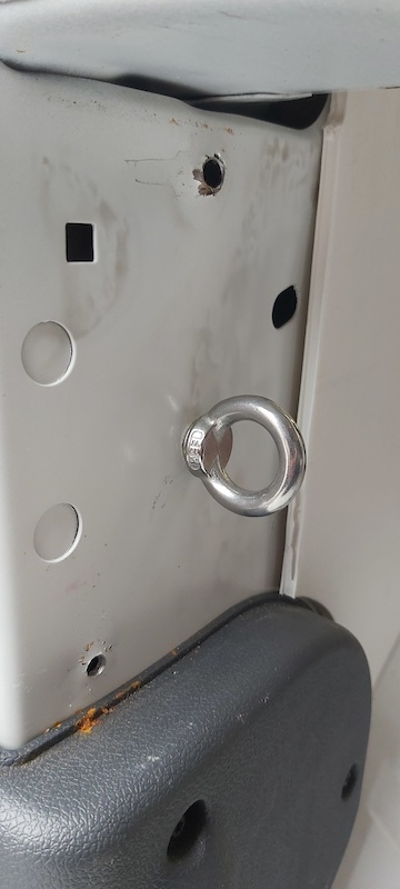 I bought a 10mm metal drill bit, a rivnut tool, some m8 rivnuts and some m8 lifting hooks.