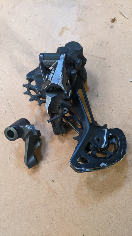 This was a fairly costly mistake at the weekend. As in, I saw and heard my bike pick up a small stick and the sound of it amongst my drivetrain and remember thinking that it could damage my mech, like has happened 3 or 4 times before, but somehow I just didn't have the thought or speed of thought to stop...until it ripped my mech into my wheel and sheared the casting in two 😭😭😭