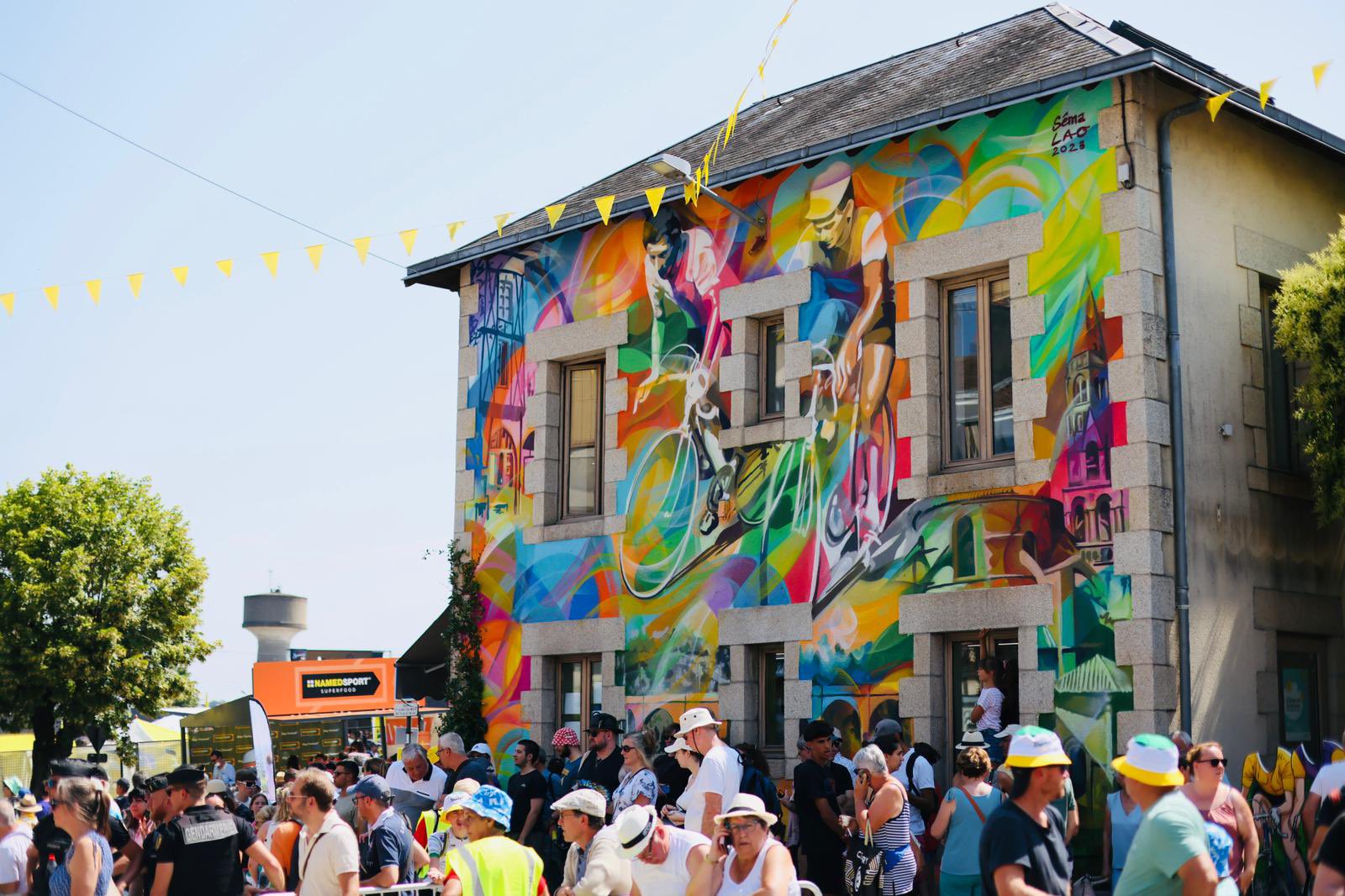 The mural above is painted on the Tourist Office in St Leonard de Noblat and very impressive it is. We freewheeled the 4 miles down to a road junction to watch them ride by at 2pm...then (confirming just how oppresively hot it feels) struggled uphill back home. Coincidentally, we moved out here 9 mths ago and lo and behold we get a 1 in 20 yr visit by le Tour. Chapeau. (Thanks for doing these daily stage threads.)