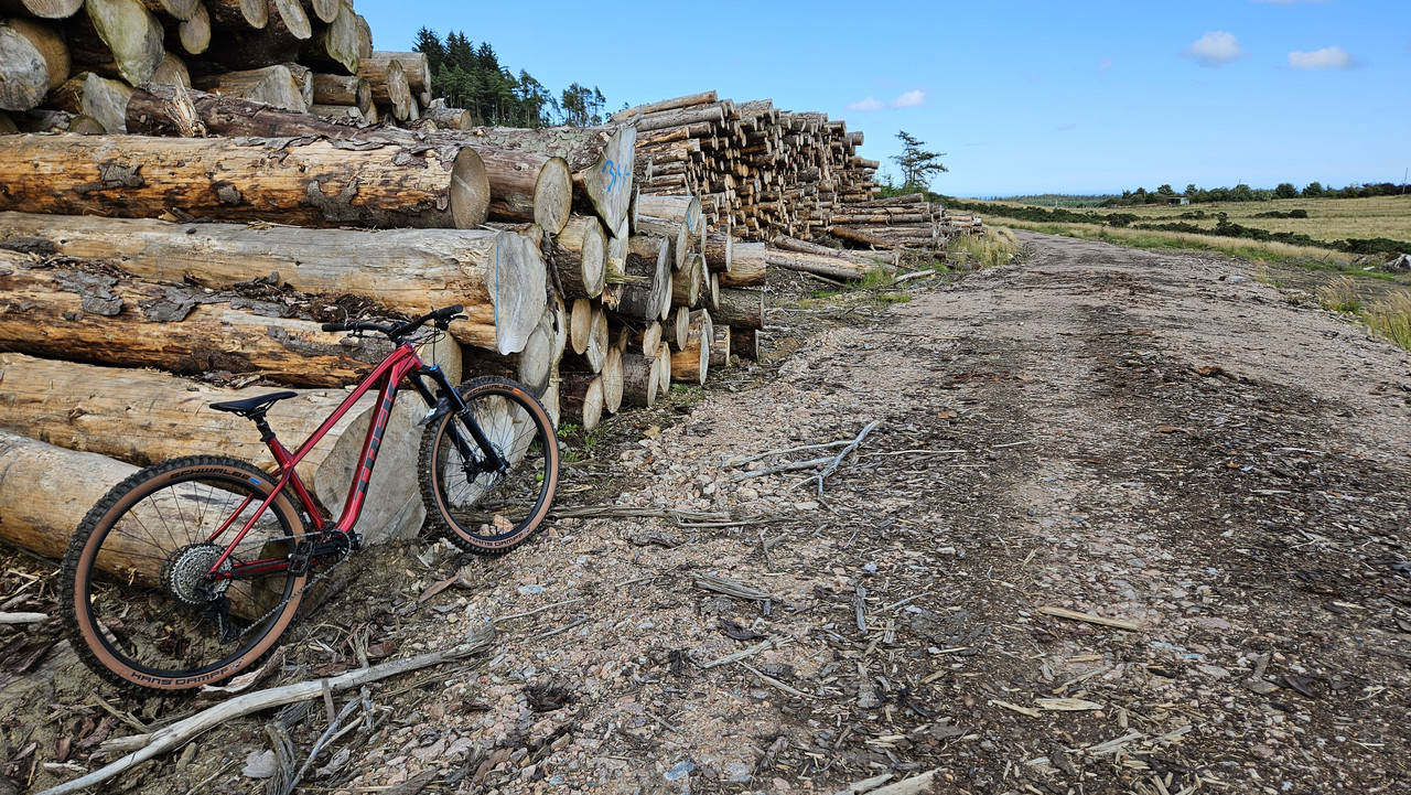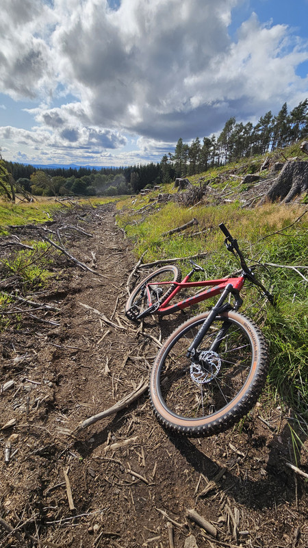Back in East Yorkshire after West Coast of Scotland hols. Quite a change in trail surface - from rivers to bone dry back home. Took the hardtail for a change, lots of walkers but dry and had some fun. Met up with the family in some woods and pulled a huuuge skid for the kids but my crank fell off! Cue long ride home with one crank...