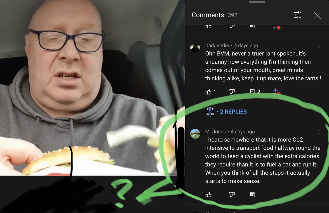 Thanks P7, that’s genuinely hilarious “I read somewhere…”. Obvs the cheeseburger that your blue van man is scarfing down has been made from sustainable locally sourced ingredients.