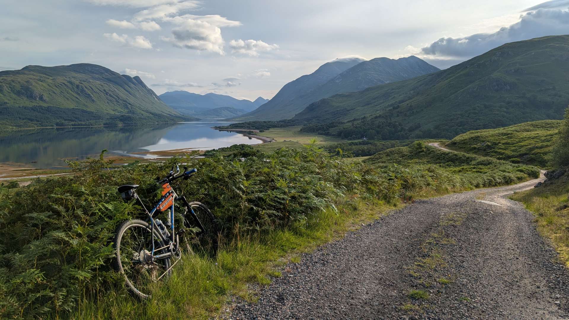 I had a ~350km version heading west up Cona Glen after the Camasnagaul ferry, up and over to the Glenfinnan monument, down Loch Shiel, over to Strontian, then basically following tracks around the next two headlands to hit tarmac and follow to Lochaline.