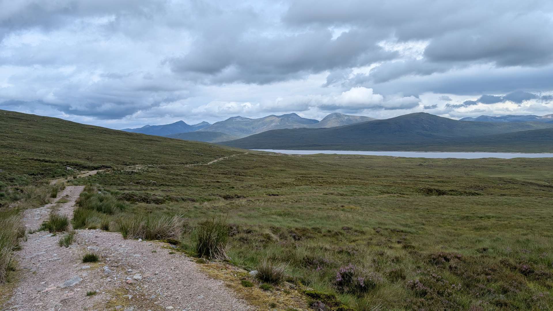 The WHW through the Lairig was surprisingly tough. I had mentally catalogued it as slightly rough landrover track, but the surface is incredibly loose with deep, unconsolidate rubbly gravel, several surprisingly steep pitches and lots of big rocks coming through. All lots of fun if you grit your teeth and commit, but I was trying to pace myself so was torn between muscling up stuff (which I think was the best approach) or pacing myself and trying to spin up in a tiny gear (of which I had plenty, 2x chainset and 11-42 cassette!).