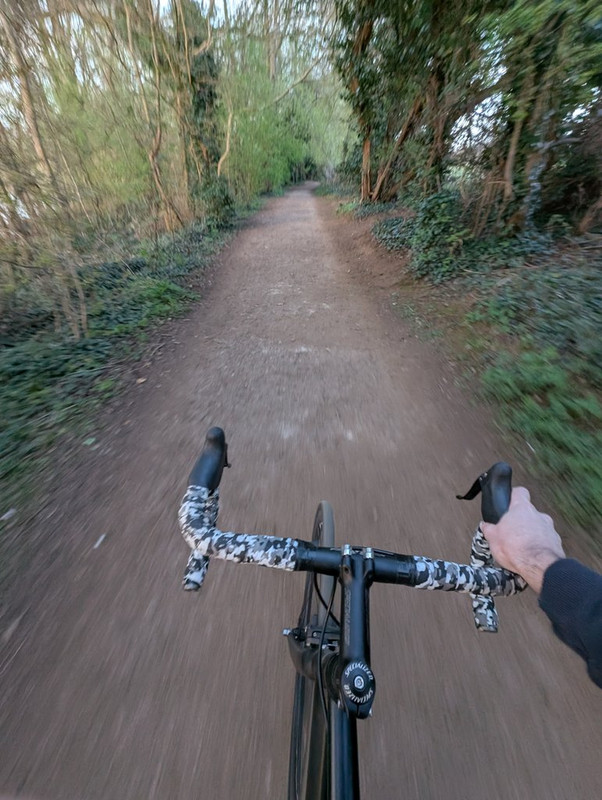 Quick local spin tonight trying out gravel again on my quite inappropriate Langster with 28c tyres at road/rollers pressures. Actually had fun this time and think maybe I should get a proper gravel bike. It was quite fun flying along the canal paths at speed, imagine with proper tyres and gears it'd be better!