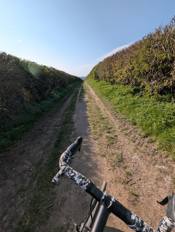 Another after work ride today. Found the limit of what I feel comfortable riding on 28c slicks, although it looks smooth on the photo, I felt every tiny bump of the farm tracks! Crawled down the last of it wishing for bigger tyres. So still undecided on gravel bike vs lighter wheels and xc tyres for the hardtail! Or maybe a rigid xc bike like the Whippet.