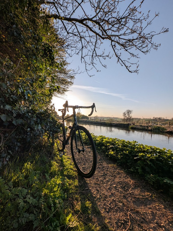 Evening gravel ride, was nice til I got a puncture. Currently awaiting rescue by my wife & kids 🙂 that'll teach me for riding gravel on a road bike and not bringing any tools or tubes! At least it went near a road so I didn't have to walk miles of towpath in road SPDs.