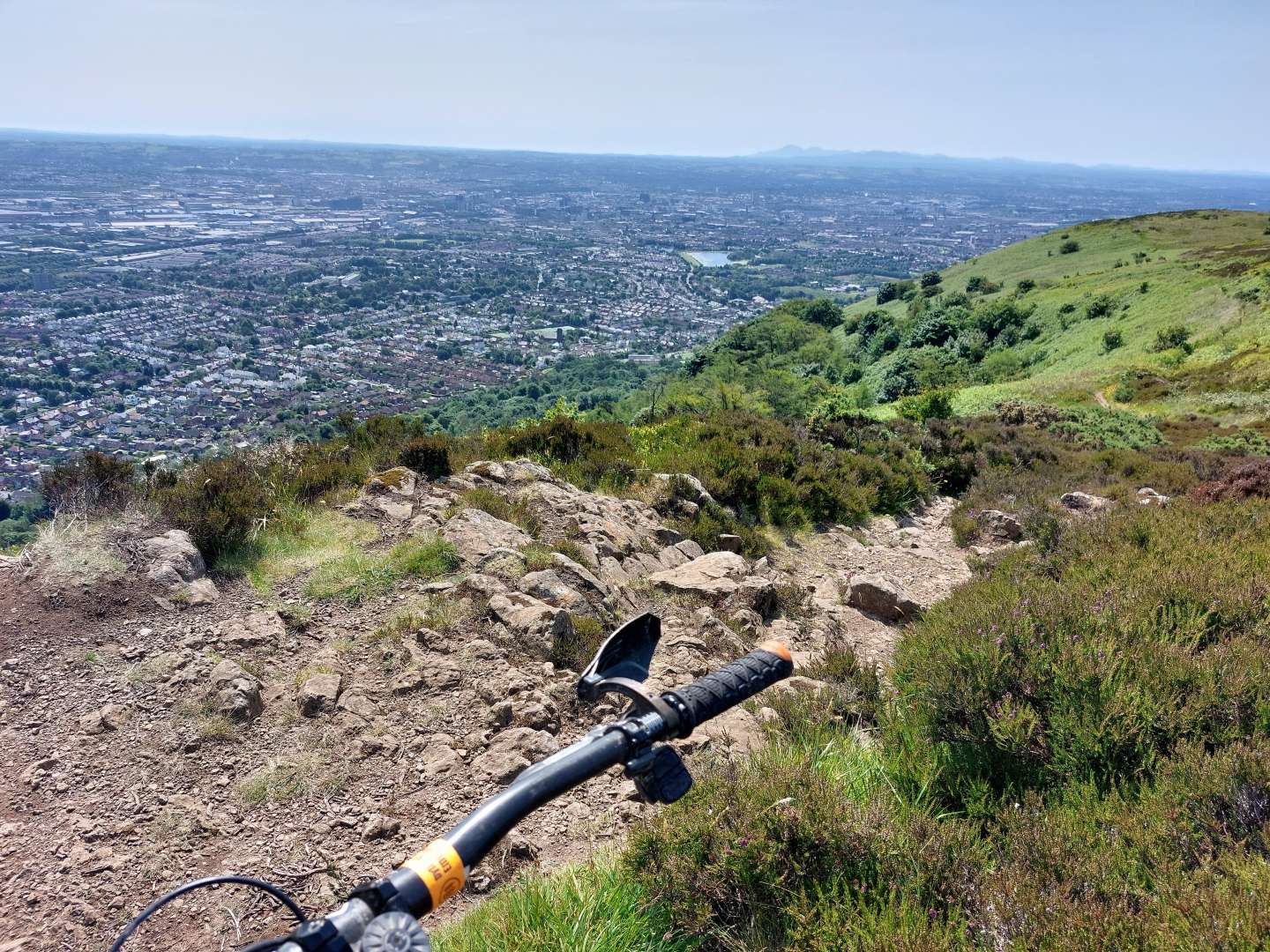 Sums up the Stirling trails last night too! Definitely livelier than they were riding on Sunday evening, more than a few roots to keep things interesting on familiar trails. Pics overlooking Stirling Uni campus from a viewpoint on Dumyat above Witches Craig route.